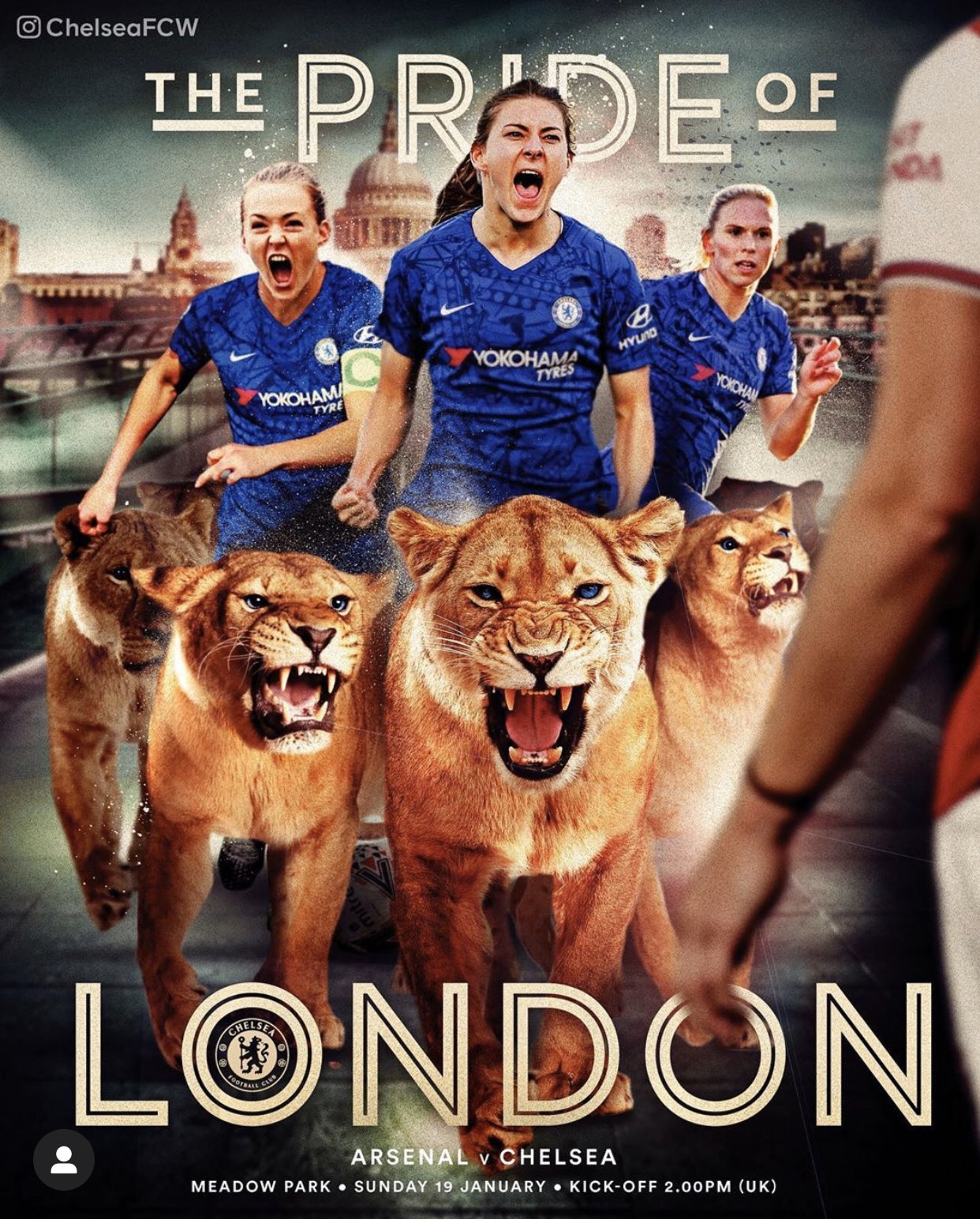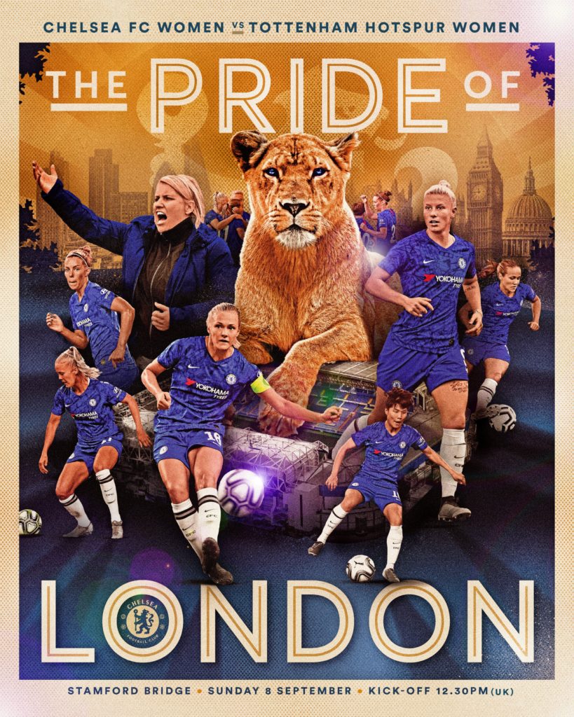 New graphics and artwork created by The Sporting Press (previously: The Guardian; Football Posters) for English Premier League club Chelsea. They feature some brilliant Photoshop work in a variety of themes (Blade Runner and Star Wars some real highlights) for match day posters and post-game celebrations for use on social media and official Chelsea online channels. Click on each image below to see in more detail.