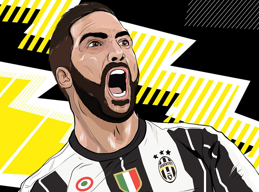 New illustration of Juventus and Argentina superstar Gonzalo Higuain created by Massimo Gangemi, who’s work we brought you …
