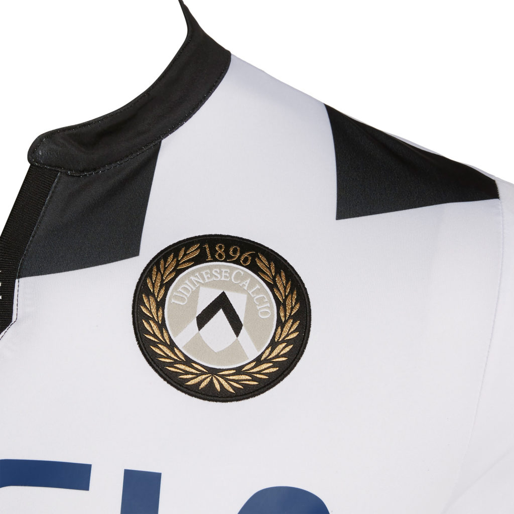 The new home shirt respects the traditions with a graphic design in vertical black and white stripes with a diagonal white band in the middle. The neck is black and Korean: the backneck is personalized with a black and white band label and on which appears the emblem of the team and the inscription I PRIMI BIANCONERI D’ITALIA on the chest on the right the Macron Hero. On the left, the heart-shaped patch with the coat of arms of Udinese Calcio in the back collar, in black, the inscription “La Passione è la nostra Forza” is embroidered.
