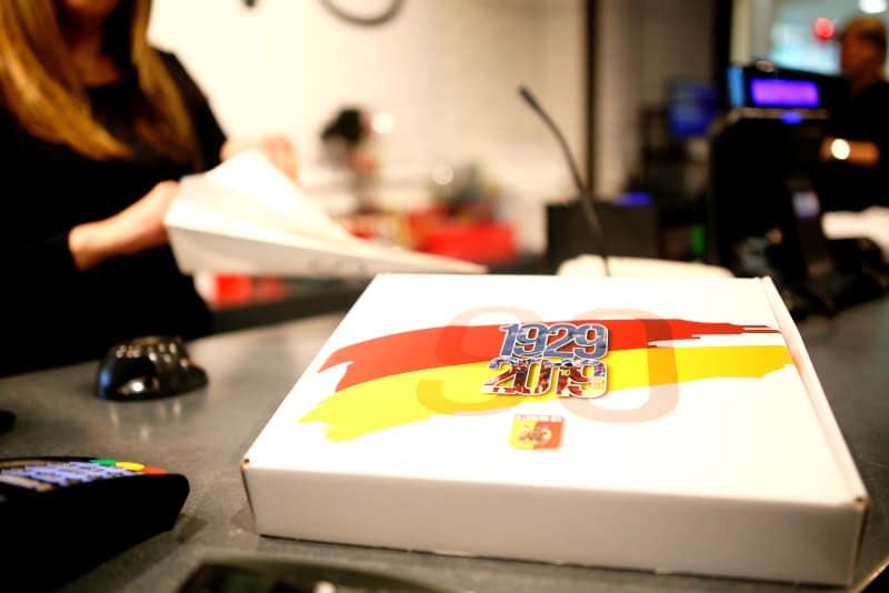 A classic neck style with striking red and yellow vertical strips, the standout feature is a subtle watermark pattern which contains the names of all players who have played at least one minute with the club since its foundation in 1929.